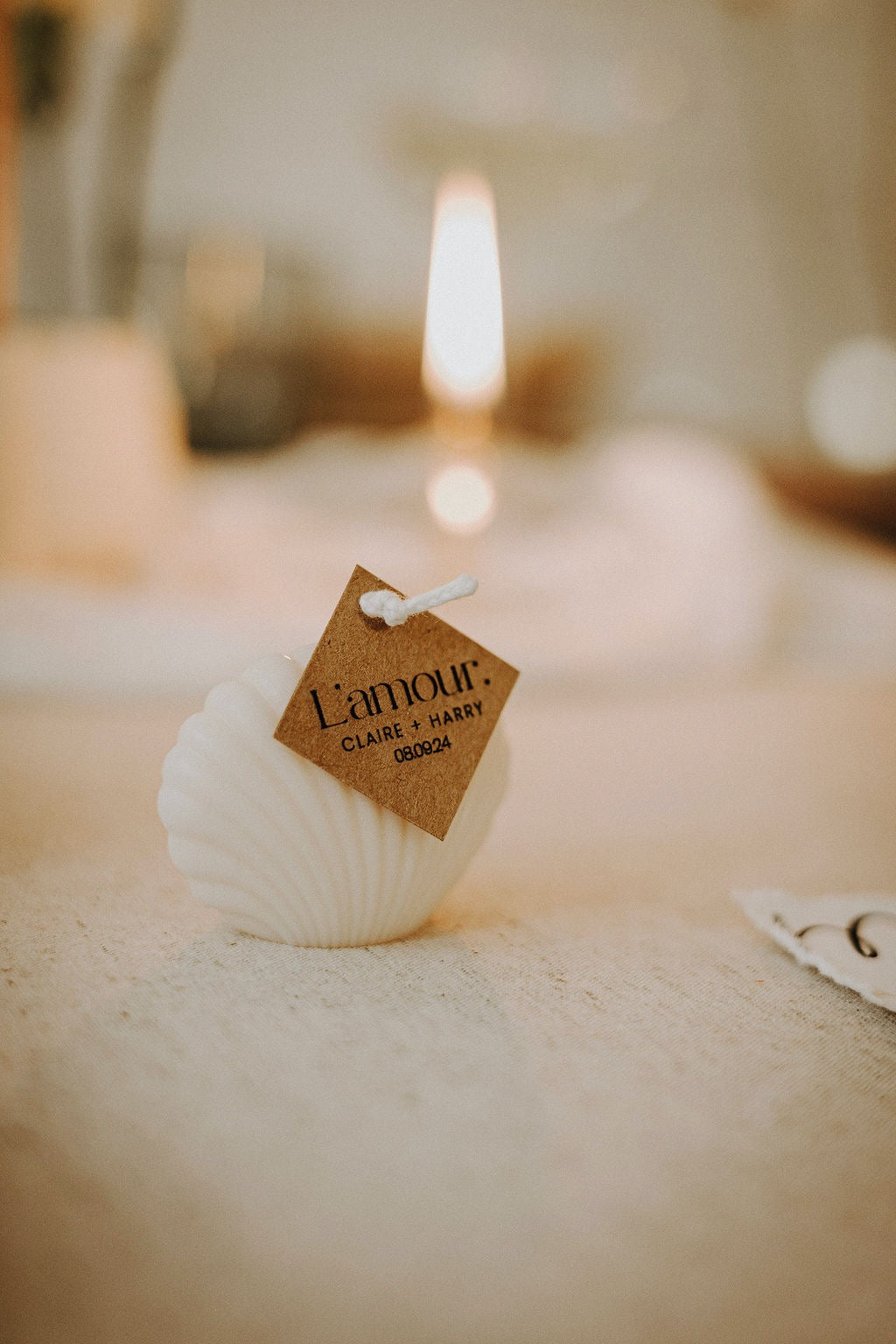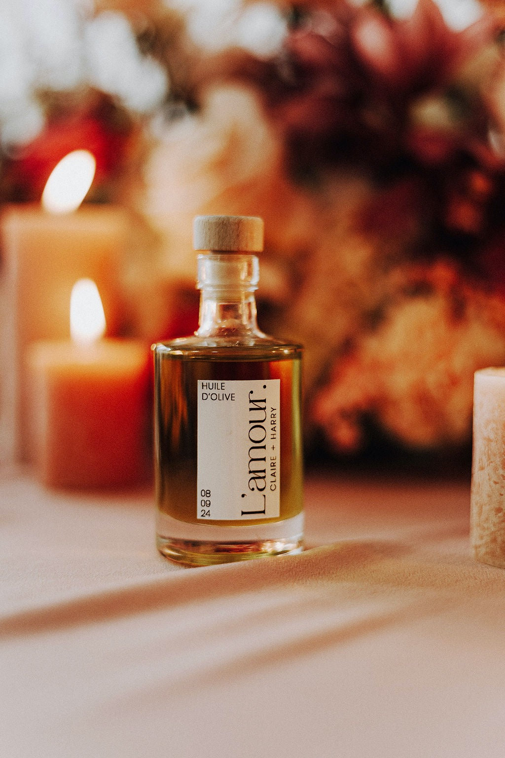 Une bougie personnalisée, un mini parfum d’intérieur ou un souvenir en lien avec votre thème… autant de présents qui reflètent votre histoire et qui donneront à vos invités l’impression de recevoir une part de vous.