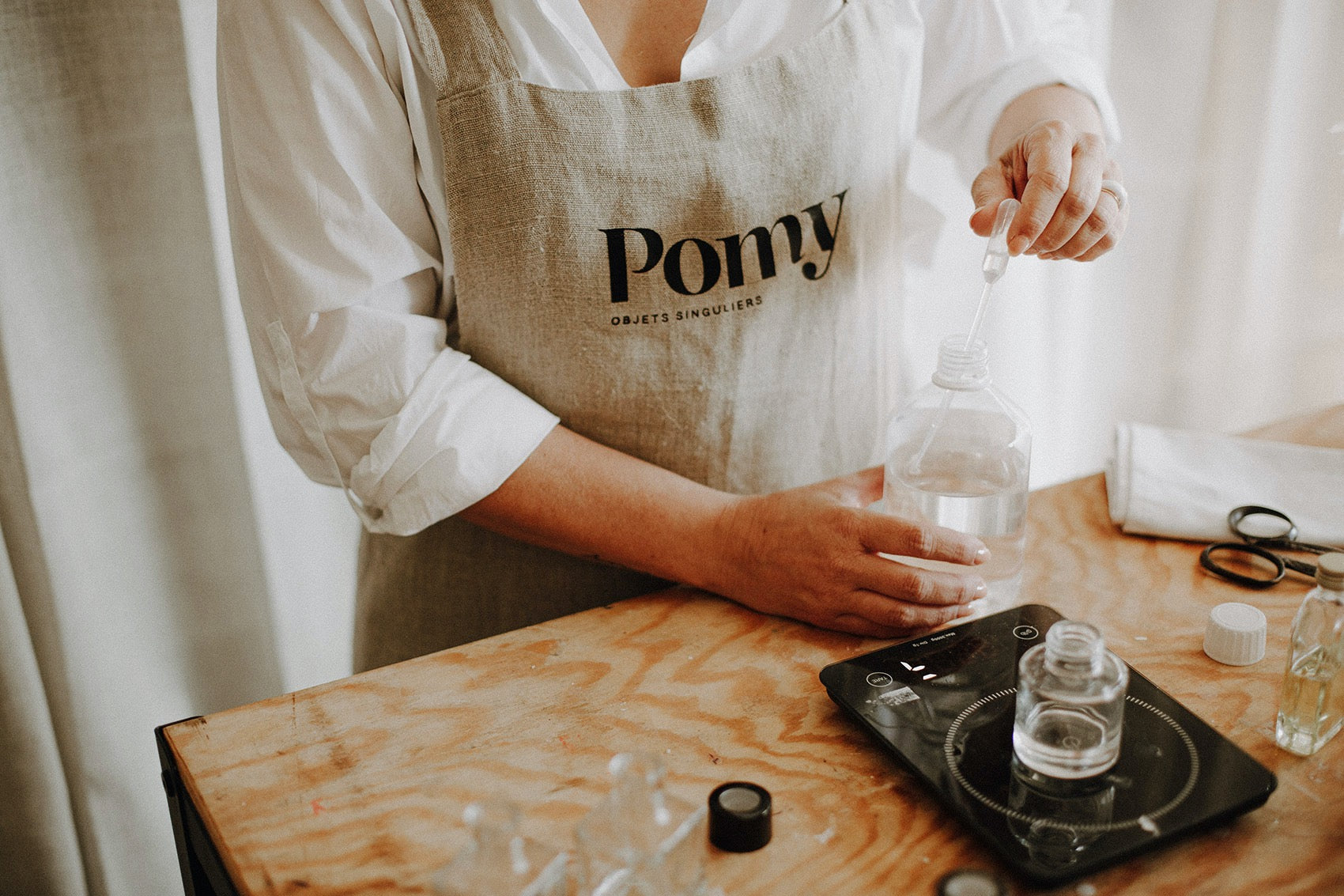 Pomy est née ainsi : de mes mains, de mon histoire, de mon désir de proposer autre chose que de simples bougies.